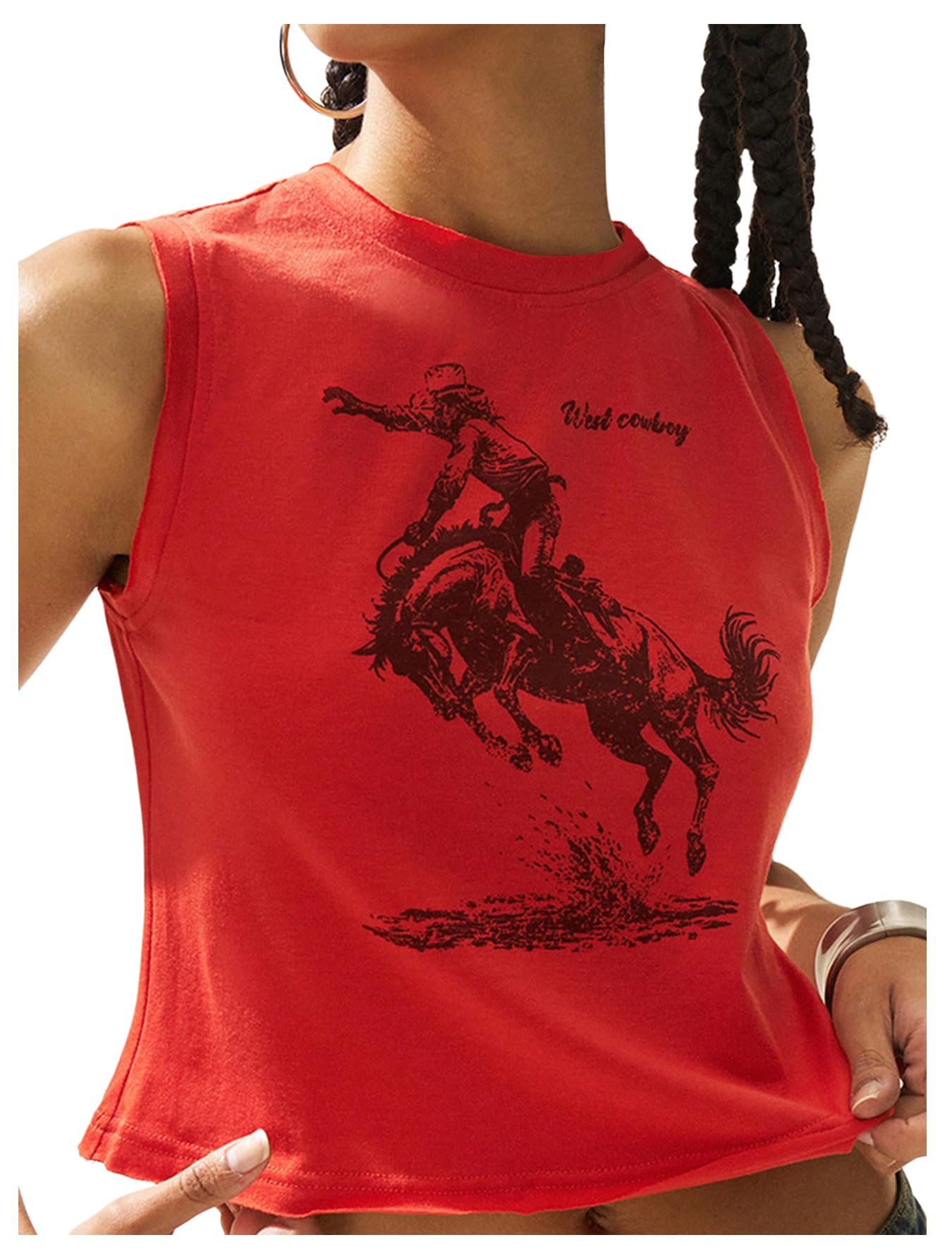 Inclusive Fit: The sleeveless, cropped cut is body-friendly, perfect for those with smaller frames to create a cool, ethereal look. Even those with a slightly larger frame can easily achieve a Western retro vibe with the high-waisted design.